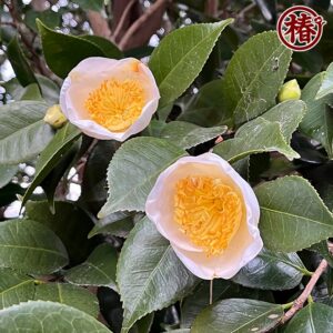蕾の写真撮影を忘れてしまいましたが、葉の艶と蕾のバランスは素晴らしくお茶花におススメしています。花もふっくらとした長筒型で青味を帯びる澄み切った上品な白椿です。