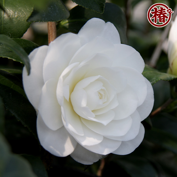 【特徴・魅力】折り重なるように美しく広がる花弁が特徴の八重咲椿です。接木地上部1.2m前後開花見込み根巻き大苗白千重~抱え咲き 大輪 2月~4月咲