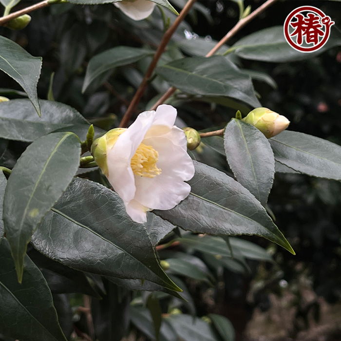 2月頃より咲き始める「胡蝶侘助・こちょうわびすけ」と共に、お茶花を代表する花として人気が高い椿です。