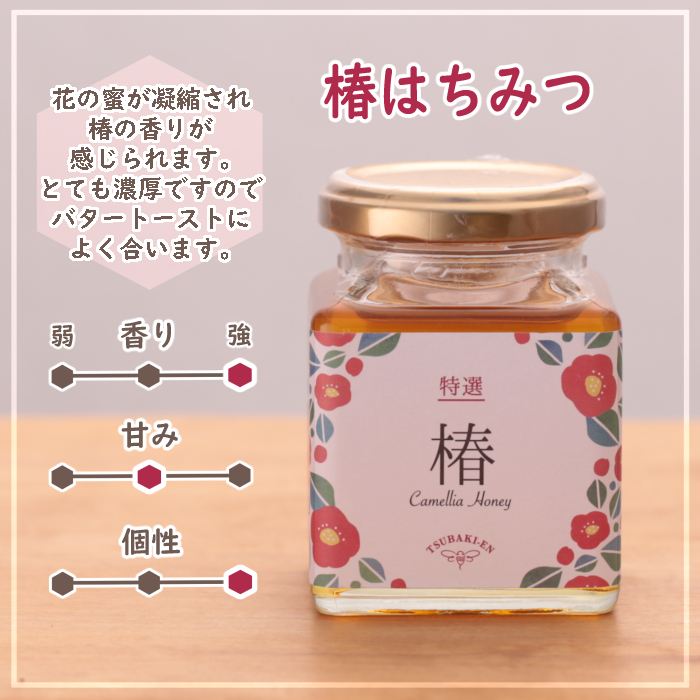 椿の咲く農園で採れた椿はちみつをはじめ、椿園ならではの個性豊かなはちみつをぜひこの機会に味わってみてください。