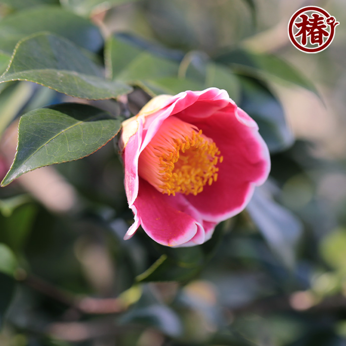 母樹である「玉之浦・たまのうら」は濃い紅色花弁と白覆輪のコントラストが美しく、今もなお人気を誇る椿です。花粉親である「加茂本阿弥・かもほんあみ」は蕾のふくらみが素晴らしく、うねりの少ない葉や上を向いて咲く花姿が切り花としても使いやすい椿です。