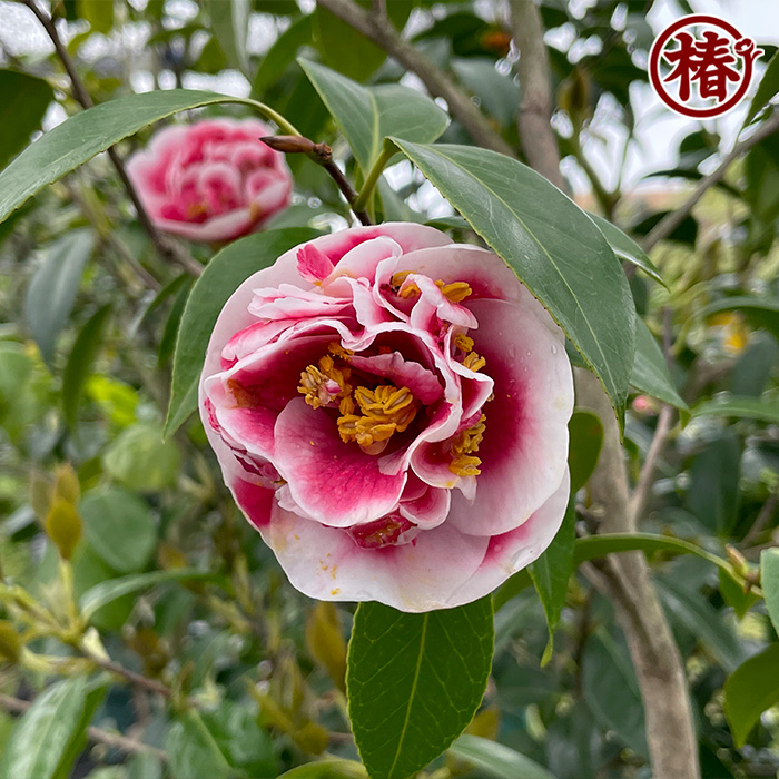 【特徴・魅力】開花初期の花は白色部分がとても多く、3月下旬~4月頃に咲く花は白が少なくなる傾向にあります。紅白のコントラストがとても美しく、椿とは思えない花模様の世界観が素晴らしい椿です。
