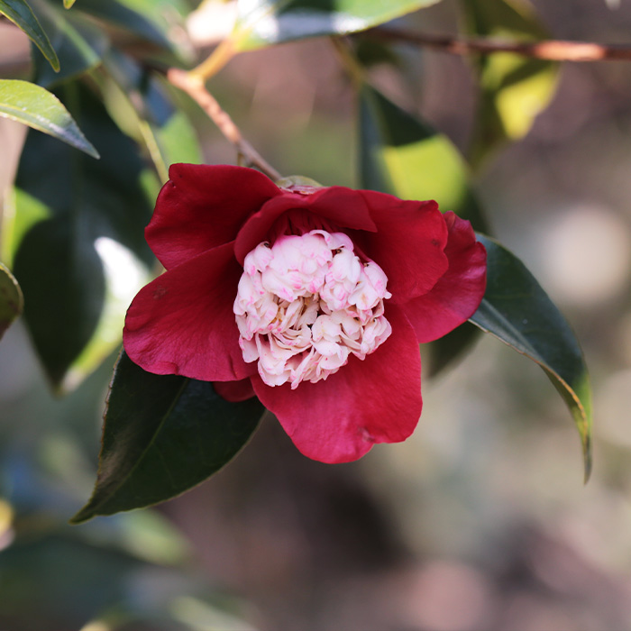 【特徴・魅力】京都・宝鏡寺(ほうきょうじ)の古木は「月光・がっこう」とも呼ばれて有名ですが、より大きい物が四国路などにも存在しており、古い時代から各地に広まっていたことが分かる椿です。