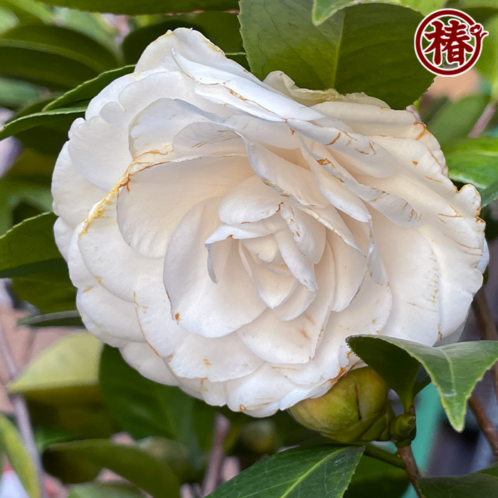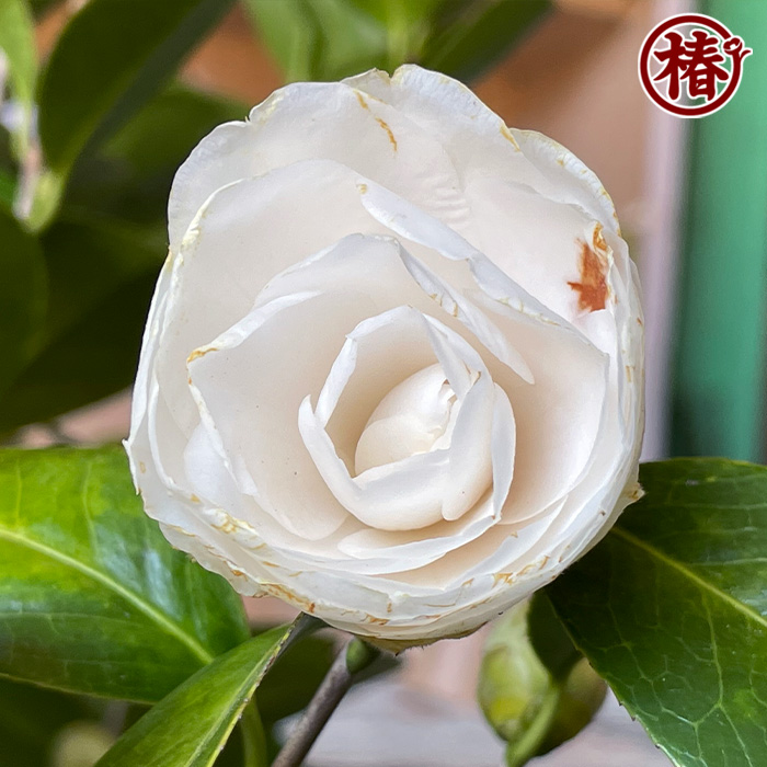 「染川・そめかわ」の枝変わり白花で、1859年発刊の「椿伊呂波名寄色附」掲載されている古典品種。
