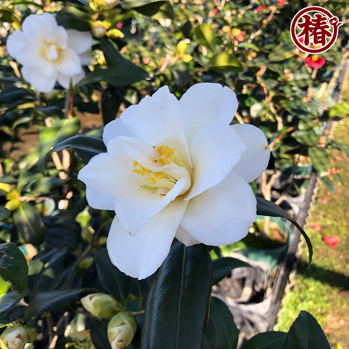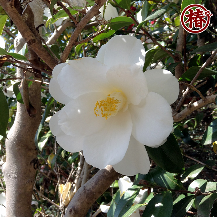 【特徴・魅力】純白の花弁同士がほどよい感覚を保ちつつ立体的に咲き進むので、花としてのボリュームが見た人に感動を与える椿となっています。