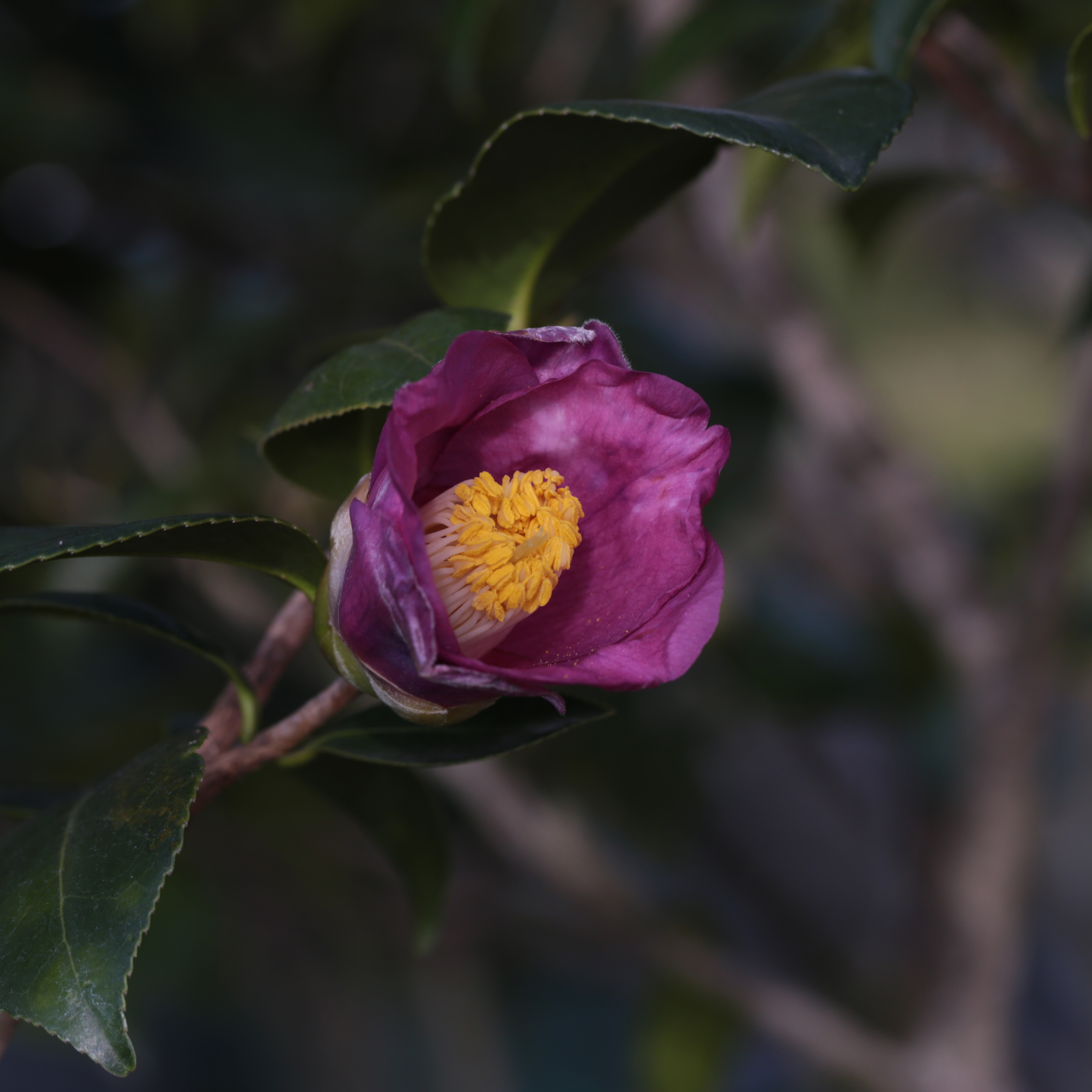 【特徴・魅力】比較的安定して紫を帯びる花色となり、開花時期の早い花ほどその傾向は強くあらわれます。伊豆諸島・三宅島の野生ヤブツバキ林より選抜種として1985年に尾川武雄氏により命名・発表されました。