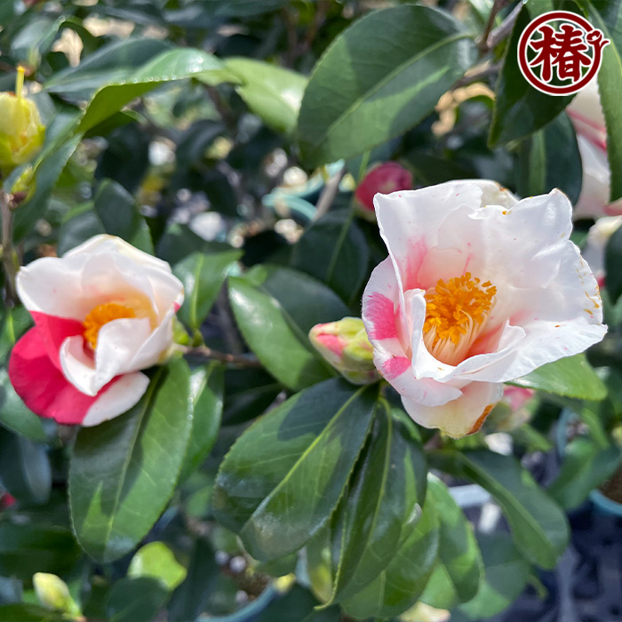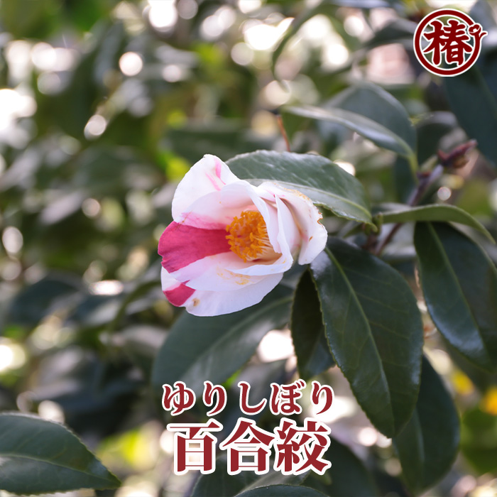 【特徴・魅力】花弁は百合(ゆり)状に反り、花開いた姿が「百合の花」を想像させる椿です。