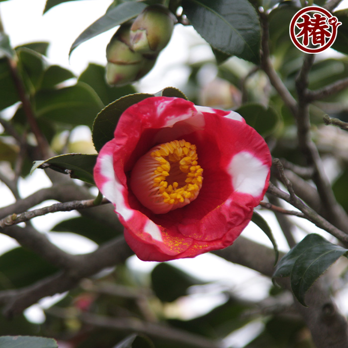 成長と共に横張り性質が強くなり、雄大な樹形に成長すると同時に開花期には花の重みで枝先が枝垂れる椿です。