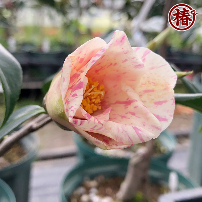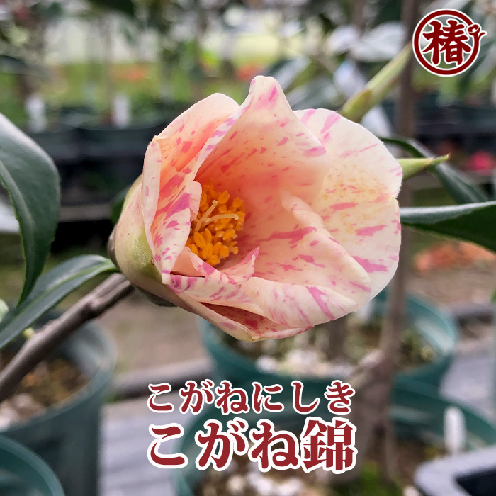 外国椿である「ベティ・F・サンダース(ベティフォイサンダース)」×「金花茶・きんかちゃ」の交配種。1993年に吉川和男氏の命名・発表となっております。