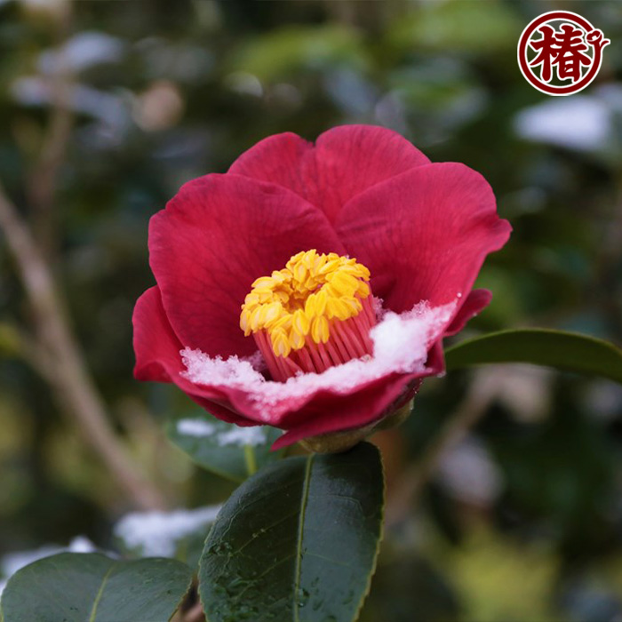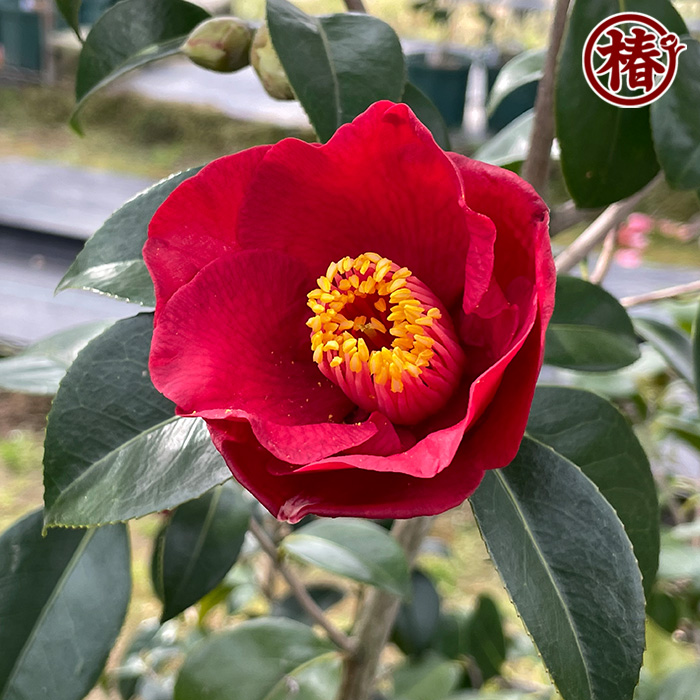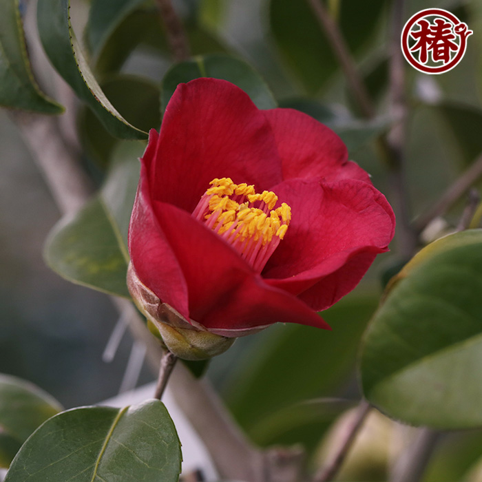 紅色系椿の中でも色濃く、花粉となる雄蕊とのコントラストがとても美しい椿。花咲く時期に特に目を惹く人気の理由として花色と花粉の色にあり、実際の花は多くの人を魅了しています。