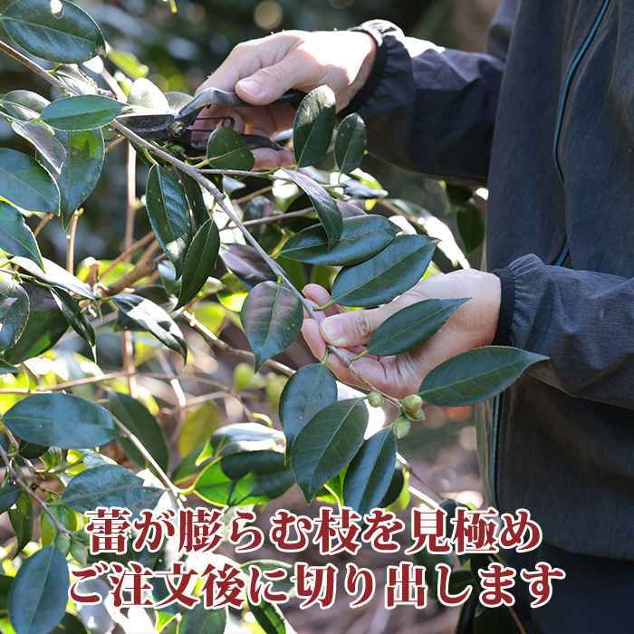 椿の花は大変デリケートで傷つきやすいため蕾の状態でお届けしております。