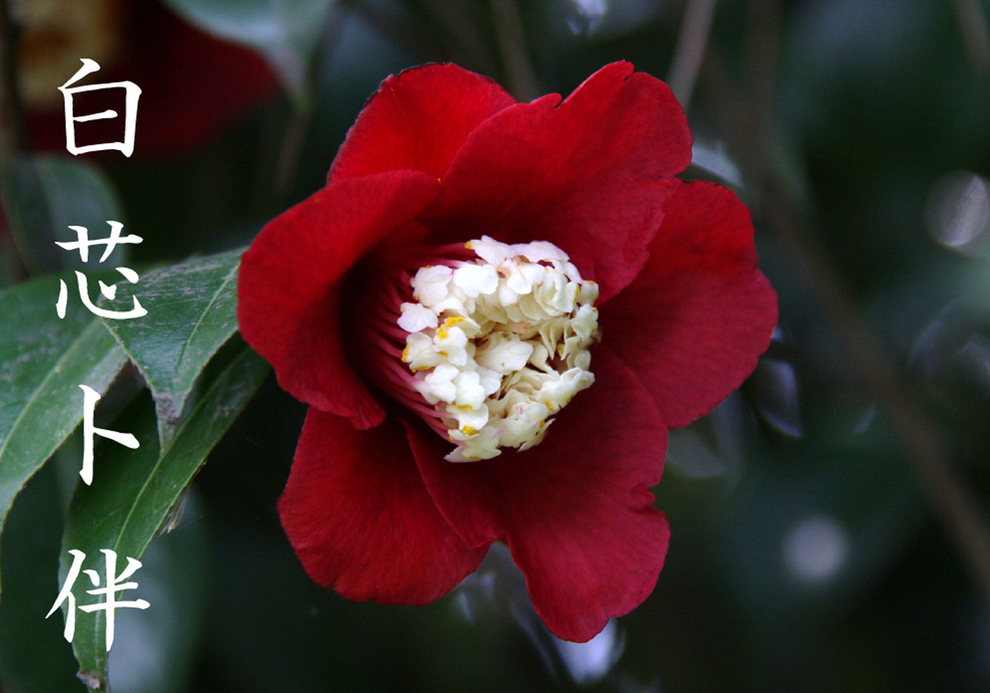 濃紅の花弁と花の中心が唐子と呼ばれる白色の花弁になる人気の椿です。地域によって呼ばれ方が変わり、関西方面では月光(がっこう)、中部地方や関東地方では卜伴椿(ぼくはんつばき)と呼ばれる。