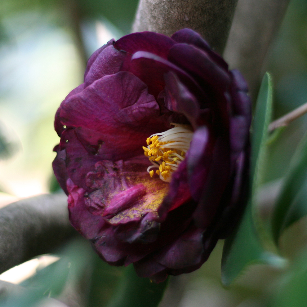 【特徴・魅力】気候により紫色を帯びる花色となります。香川県さぬき市志度生まれの偉人・平賀源内(江戸時代中期)ゆかりの椿として「平賀源内旧邸」では大切に保存されています。