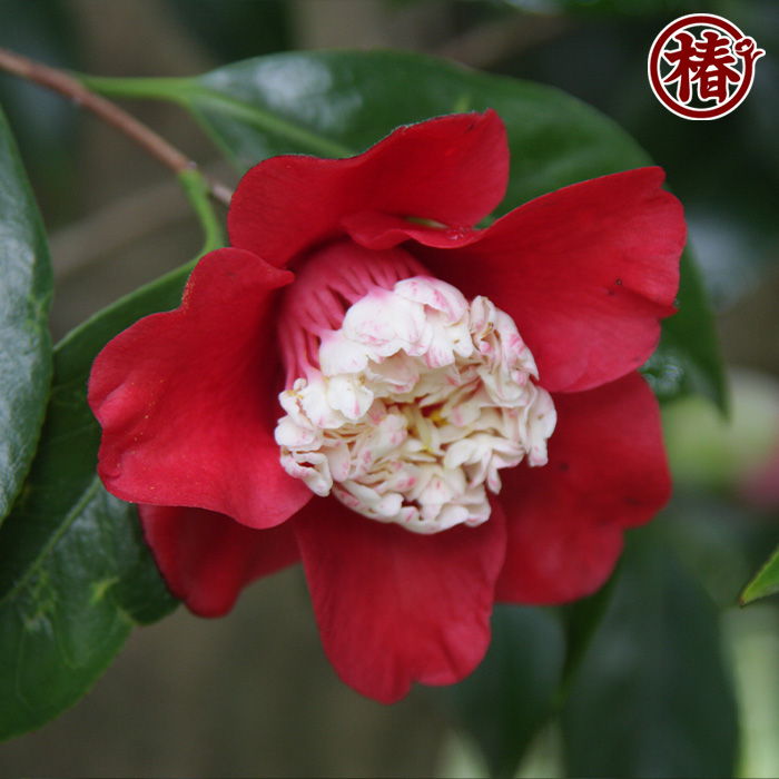 濃紅の花色に純白の花芯が印象的な園芸品種でとても人気のある花となっており、「卜伴・ぼくはん」や「月光・がっこう・げっこう」など地方により呼び名が変わる椿です。
