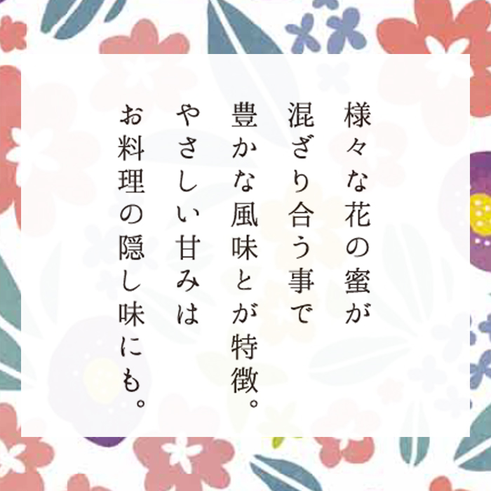 様々な花の蜜が混ざり合う事で豊かでマイルドな風味となっています。
