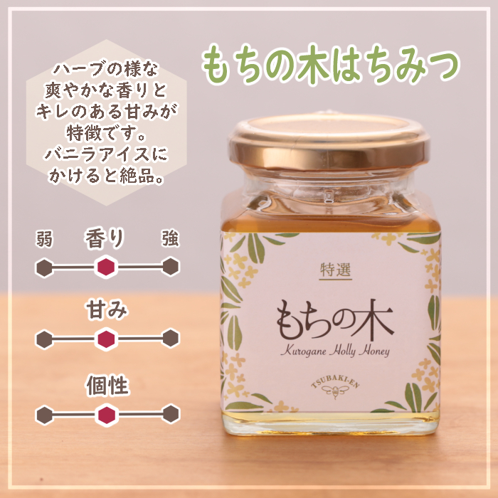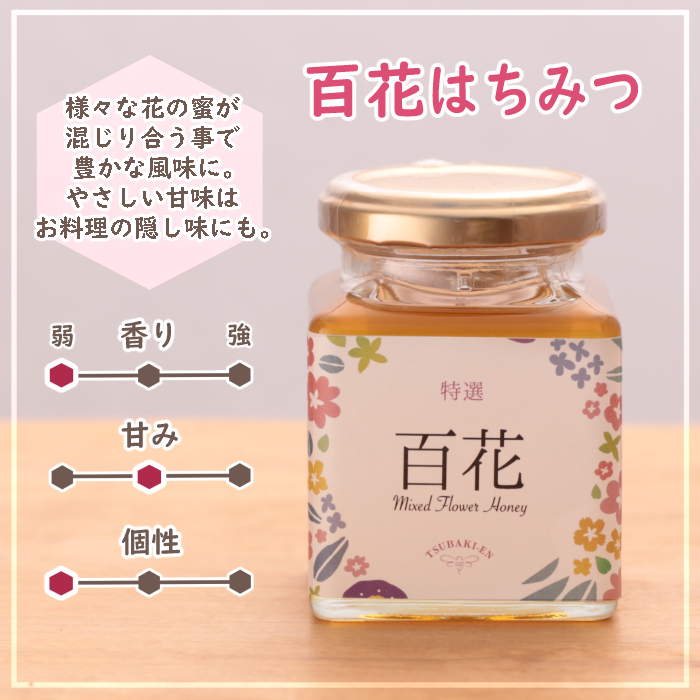 【商品内容】椿はちみつ200g・もちの木はちみつ500g・百花はちみつ500g 各1本
