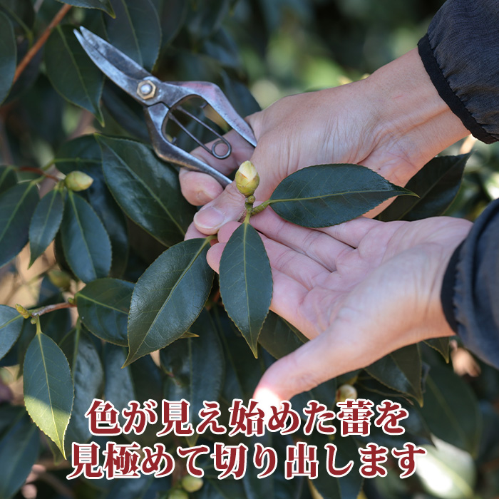 椿の花は大変デリケートで傷つきやすいため蕾の状態でお届けしております。