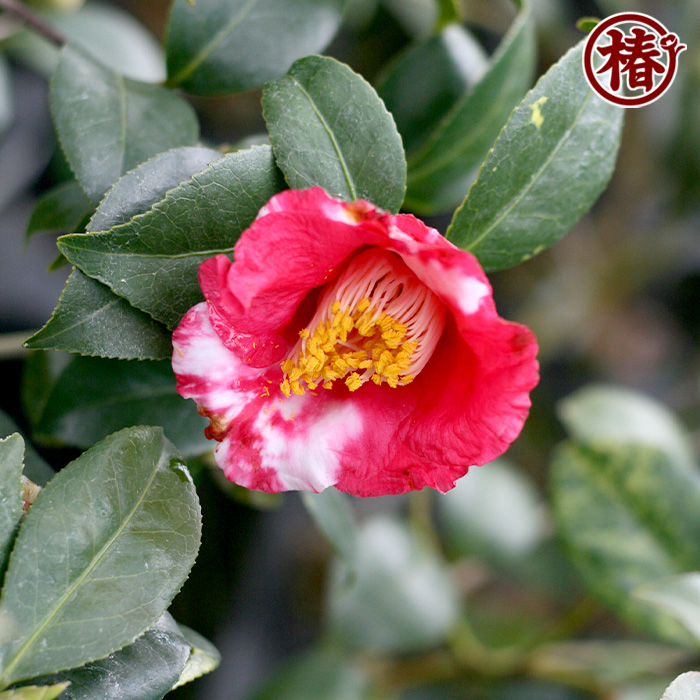 【特徴・魅力】奈良県の東大寺開山堂に原木があり、赤い椿に糊をこぼしたような花姿より付けられた品種名とされています。