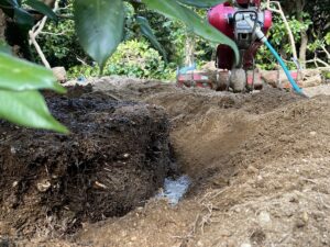 何日かに分けて整備するので夕方までに仮植(「かしょく」と言い、一時的に植え付ける作業)をしておきます。