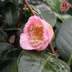 みなさんこんにちは!椿園の佐藤です。雨上がりの今日は鉢植えで咲いていた【福わ内・ふくわうち】をご紹介します♪