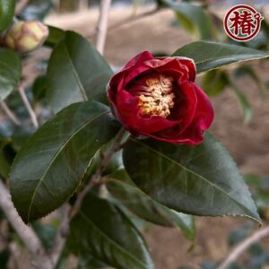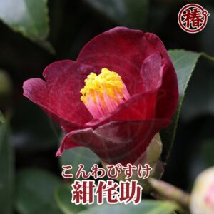 この親は「紺侘助・こんわびすけ」という椿ですが、先日公開の「椿園チャンネル・侘助特集」でも紹介した通りわびすけではなく。しっかりと花粉を吹くヤブ椿の系統になります。