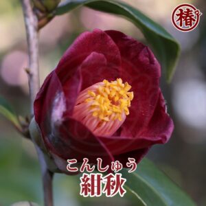 どちらも紅色ではもっとも色濃い部類になり雄蕊の黄色い花分との対比が美しいです。紺秋はややふっくらとした花姿が特徴で年内よりチラホラと咲き始める赤い椿、紺侘助はストレートの筒咲き、2月~3月頃よりついている蕾が一斉にゆるんで咲き始めるという性質の違いになります。
