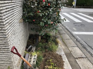 僅か1m程度の狭いスペースですが、樹高2m以上の椿でもしっかりと育ちます。