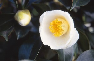特徴  早咲き椿の代表品種。やや枝垂れ傾向でおとなしい木立ちとなる。