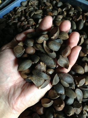 その中で先日収穫した椿の実がはじけて、種子の選別を行っております。