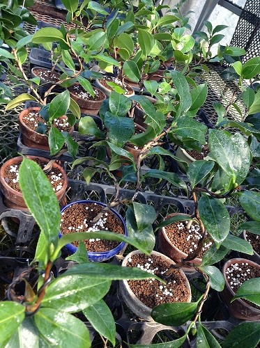 9月より販売予定の「椿盆栽仕立て」苗を少しずつですが作っています。 椿の盆栽風仕立てですね。