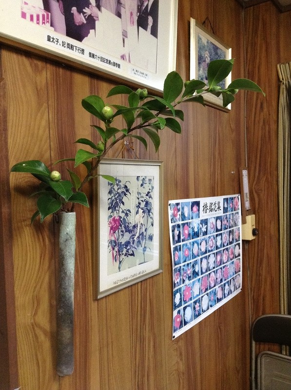 当園事務所もこれからシーズンオフまでは椿をお迎えの花として飾ります。