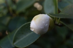 丸々と大きくなる蕾も魅力ですが、やや下垂して咲く花姿は一輪で主役になる椿です。