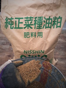 根の先がある根鉢の周りに油粕を盛るように何点か置いておきます。