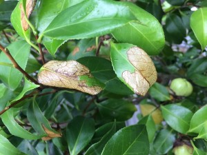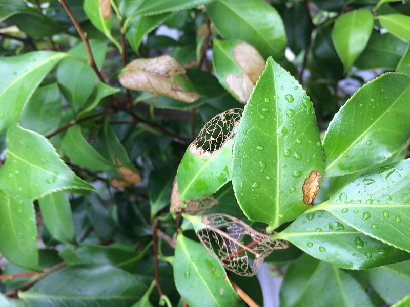 育てている椿の葉。こんな感じで穴が空いていませんか?