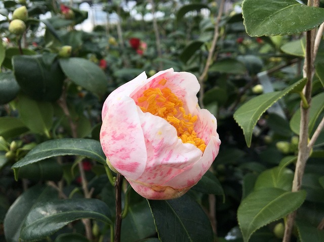 生産農園では「胡蝶絞侘助-こちょうしぼりわびすけ-」が咲いています。