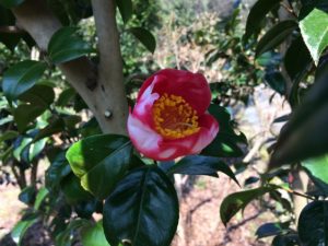濃い緑色となる葉の艶、お茶花として切り出しやすい枝の長さ、花色の美しさなど