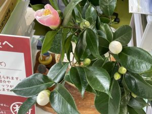 皆さんのお庭や鉢植えで育つ椿、切り枝にして家の中でもお花見を楽しんでくださいね(^^)