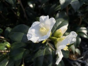 わびすけ椿の代表的な品種【白侘助・しろわびすけ】が咲き始めました♪