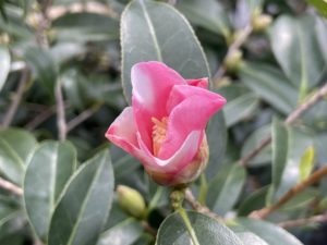 みなさんこんにちは!椿園の佐藤です。 生産農園にて小さな桃色の花【乙姫・おとひめ】が咲き始めましたのでご紹介します♪