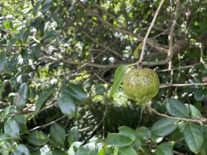 実の表面が縞模様になっている!そうです、こちらは絞りの花である【白玉絞・しらたましぼり】の実なのです。